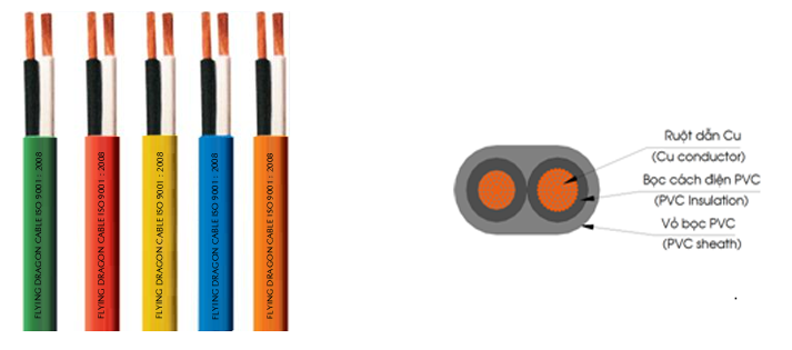 Trang chủ/Sản phẩm/Dây điện cách điện PVC 450 - 750V/Dây điện 2 ruột mềm bọc PVC