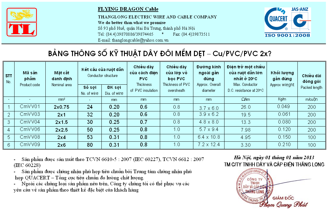 Với gần 20 năm kinh nghiệm chuyên sản xuất các sản phẩm dây và cáp điện, phục vụ cho công nghiệp năng lượng và các ngành kinh tế quốc dân khác.