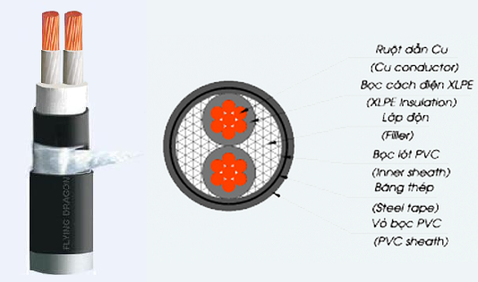 Trang chủ/Sản phẩm/Cáp ngầm hạ thế vỏ bảo vệ PVC 0,6/1kV/Hai ruột