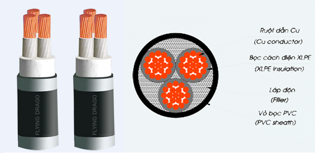 • Cáp ngầm hạ thế vỏ bảo vệ PVC 0,6/1kV