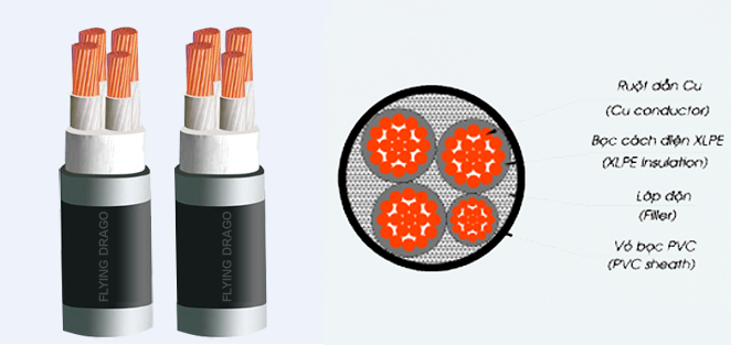 • Cáp ngầm hạ thế vỏ bảo vệ PVC 0,6/1kV
